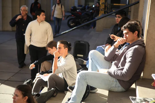 En este contexto, durante la previa de la marcha de la semana próxima, la comunidad educativa de la Facultad de Filosofía y Letras (FFyL) convocó a realizar un abrazo a esa sede de la UBA para defender la universidad pública y contra el desfinanciamiento de la misma.