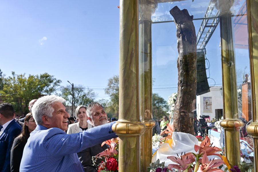 El gobernador Poggi y el vicegobernador fueron recibidos por la intendenta local, Romina Peralta, en el hito donde descansan los restos del exgobernador José Santos Ortiz. Desde allí caminaron hasta el Santuario, saludando a vecinos, comerciantes y promesantes que se acercaron a compartir palabras de fe y esperanza.