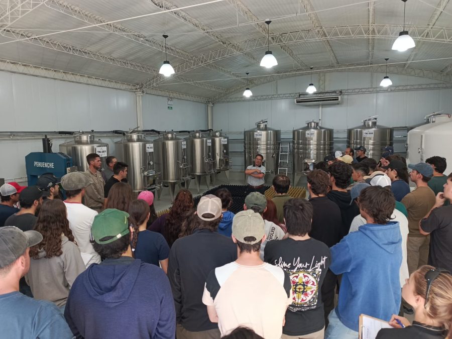 La jornada incluyó además una visita a la bodega, uno de los sectores que refleja el valor agregado promovido por el establecimiento. En ese ámbito, conocieron el proceso vitivinícola completo, desde el cultivo de la vid hasta la elaboración del vino, incorporando conceptos vinculados a la industrialización de la materia prima.