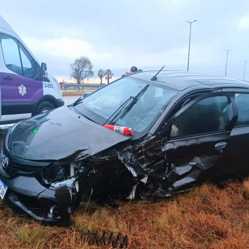 Un accidente de tránsito ocurrido este mediodía en la Autopista 25 de Mayo dejó como saldo un herido y considerables daños materiales. El siniestro se produjo alrededor de las 13:20 horas a la altura del barrio Villa Aguadita del Portezuelo, y estuvo vinculado a las malas condiciones climáticas que afectaban la zona.