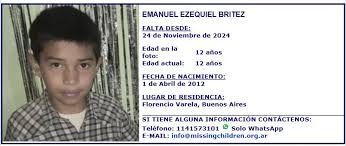 El Alerta Sofía se activó para encontrar a Emmanuel Ezequiel Britez, un niño de 12 años que el domingo pasado salió de su casa en Florencio Varela para dirigirse a clases de guitarra y nunca más regresó. Su tarjeta SUBE registró su último movimiento en Constitución.