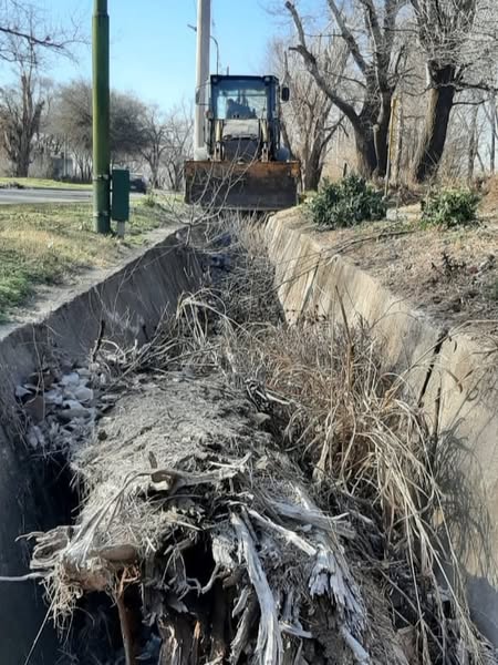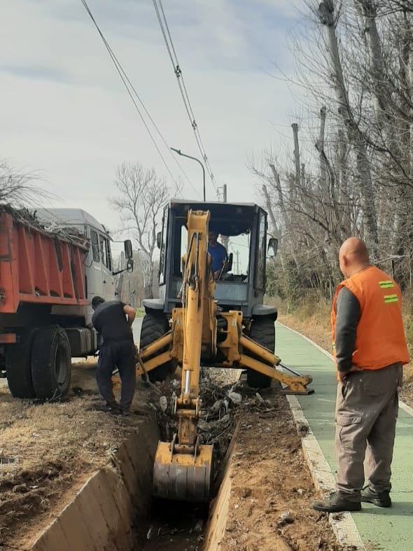La Secretaría de Infraestructura, Servicios Urbanos y Obras Públicas, a través del área de Desagües Pluviales, continúa con los trabajos de limpieza y mantenimiento del canal ubicado en la avenida Jorge Newbery.