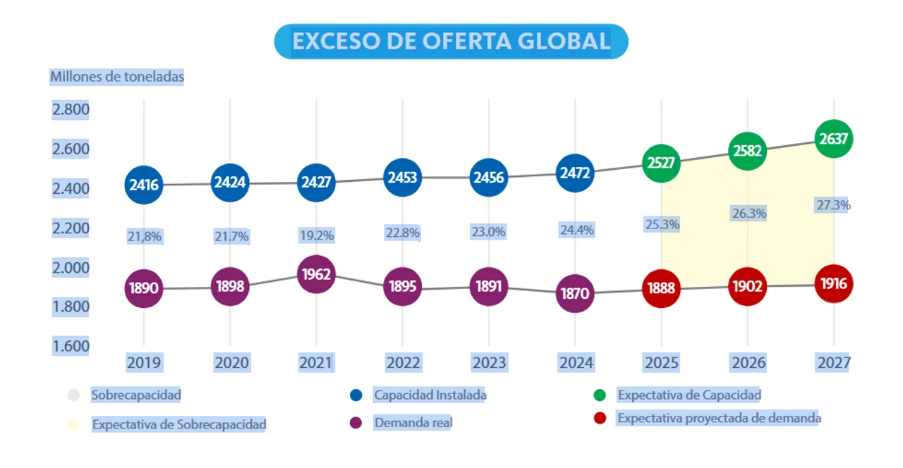 La sobreoferta global de acero, liderada por China, continúa presionando con mayor exportación, afectando los diferentes mercados. En diciembre de 2025, China superó los niveles de exportación vistos por última vez en 2015.