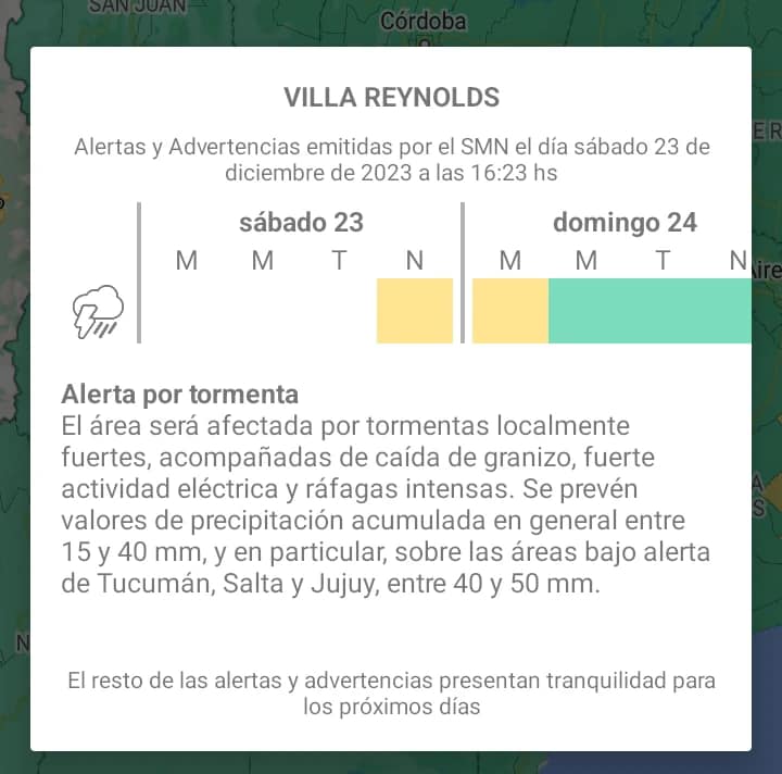 En este momento estás viendo Villa Mercedes: Alerta por tormenta